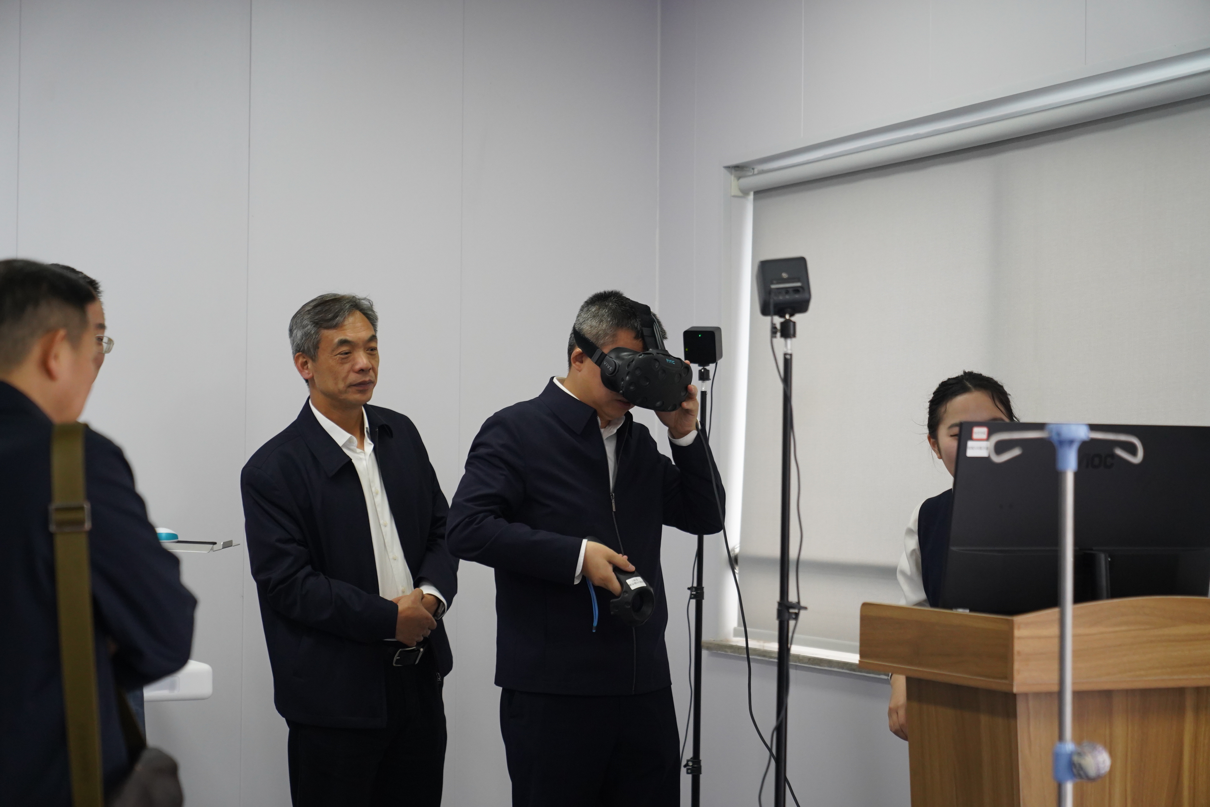 “老師,您可以試試人體器官全息幻影成像系統,它讓我們的專業學習更加直觀呢。”跟隨學生引導員的指引,考察團被360°人體器官全息幻影成像系統所吸引,在空氣觸摸手勢的控制下,利用4塊分屏查看3D解剖器官組織和人體八大系統。同時,大家饒有興致地體驗了生命安全教育VR軟件,模擬體驗火災和校園地震應急逃生,這種沉浸感、交互性、構想性的學習方式以及信息技術與教育教學深度融合贏得了考察團一致認可。
