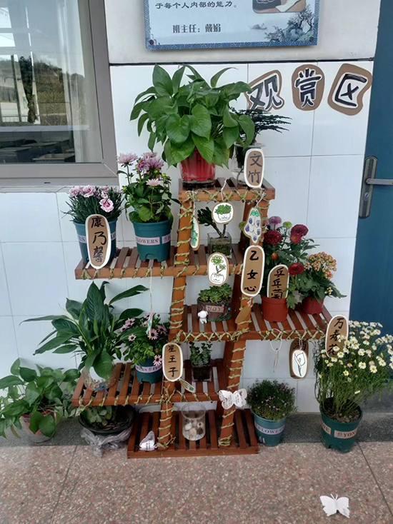 校園里,同學們如火如荼地布置班級綠植角,由此營造環保、綠色、美麗的班級氛圍,從而讓綠色走進教室、融入校園。