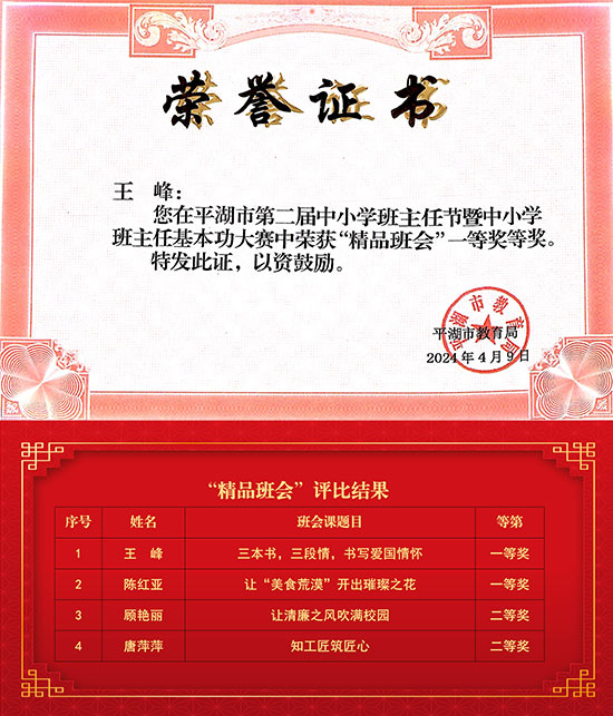 本學期初,學校根據平湖市第二屆中小學班主任節暨班主任基本功比賽實施方案內容,結合實際情況,積極組織校內比賽,經過層層選拔,擇優推薦參加市賽。參賽選手仔細研究文件精神,認真備賽、仔細打磨,精益求精地抓好每一個細節,相互之間交流分享、團隊協作,充分展現了交通學校德育團隊扎實的育人功底、先進的教育理念和資深的專業素養。