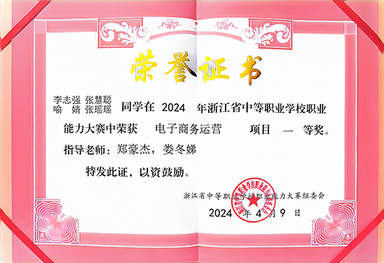 日前,2024年浙江省中等職業學校職業能力大賽(學生技術技能類)“電子商務運營”項目比賽在浙江商業職業技術學院隆重舉行。紹興財經旅游學校電子商務競賽隊參加本次大賽并榮獲該賽項一等獎第一名的好成績,獲得國賽入場券。