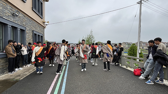 23級的尼瑪桑珠小組開心地分享道:“今天,在老師的帶領下,我們有幸前往新校區的瞻岐鎮,目睹了叔叔阿姨們跑馬燈的精彩表演。據一位叔叔介紹,跑馬燈是當地獨特的習俗,承載著深厚的歷史底蘊。這次瞻岐鎮之行讓我觀賞到了前所未見的節目,我感到非常開心。叔叔阿姨們還給我們準備了青團和礦泉水,他們的熱情接待也讓我深感藏漢之間的深厚情誼。”
