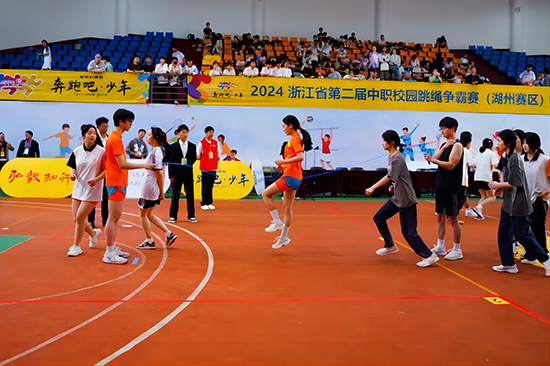為貫徹實(shí)施體教融合,增強(qiáng)中職學(xué)生體質(zhì)健康,提高學(xué)生體育運(yùn)動(dòng)興趣,培養(yǎng)學(xué)生團(tuán)結(jié)協(xié)作的精神,4月14日上午,2024浙江省第二屆中職校園跳繩爭(zhēng)霸賽(湖州賽區(qū))在浙江信息工程學(xué)校·湖州工程技師學(xué)院舉行。本次活動(dòng)由浙江省青少年體育運(yùn)動(dòng)聯(lián)合會(huì)、浙江省教育廳職成教教研室聯(lián)合主辦,來(lái)自市內(nèi)中職學(xué)校的7支代表隊(duì)共110多名選手參賽。