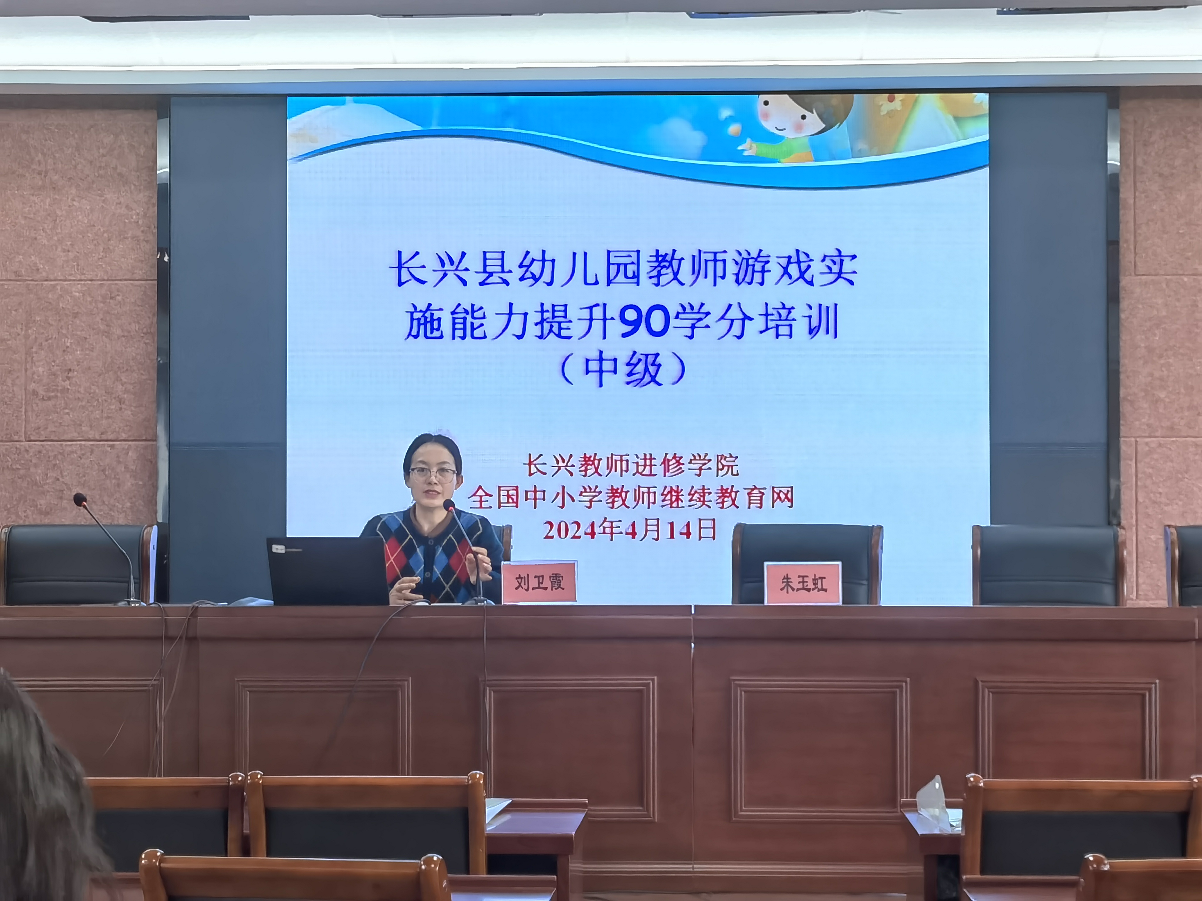 4月14日,長興教師進修學院和全國中小學教師繼續教育網共同組織的幼兒教師游戲實施能力提升90學分(中級)培訓班進行了第一階段培訓,80位學員參加培訓。