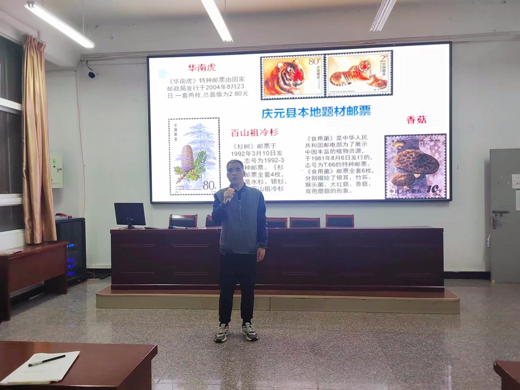 為配合學校正在開展的中華人民共和國成立75周年“我和我的祖國——我與新中國郵票”主題征文活動,進一步開拓學生視野,提高學生的集郵興趣,培養學生高雅的情操, 4月15日,慶元縣職業高級中學集郵協會在階梯教室舉辦了一場題為“怎樣寫好集郵征文”的集郵知識講座,來自全校各班的語文課代表和全體集郵協會成員聆聽講座。
