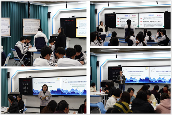公開課結(jié)束后,馬上進(jìn)入說課評課環(huán)節(jié)。兩位開課教師闡述了自己的設(shè)計理念及上課過程的得失。隨后,聽課教師針對聽課內(nèi)容發(fā)表自己的看法,圍繞高三作文復(fù)習(xí)頭腦風(fēng)暴,各抒己見。有老師指出,今天的兩堂作文課,從審題到內(nèi)容,從筑基到造高樓,正好形成作文教學(xué)的一個閉環(huán);有老師認(rèn)為,付老師的課在學(xué)生原有基礎(chǔ)上進(jìn)行提高,沈老師的課注重學(xué)生思維的培訓(xùn),兩位老師都提供了可操作的作文教學(xué)的流程,可以直接借鑒使用。最后徐立瑾老師總結(jié)發(fā)言,徐老師高度肯定了兩位老師的課,精心準(zhǔn)備,有思路、有方法、有突破、有成效,也指出還需要重視培養(yǎng)學(xué)生在作文教學(xué)活動中,所應(yīng)表現(xiàn)出的語文素養(yǎng)、精神品質(zhì)和綜合能力。