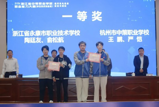 經過激烈角逐,永康職技校與杭州中策職業(yè)學校榮膺省一等獎,同時產生4名二等獎、6名三等獎。學校參賽隊伍機器人211班陶廷友,自動化210班俞松航(指導老師:陳富龍,黃李懷),榮獲浙江省一等獎(第一名),成功入選國賽。倪志明、夏其明、曹李民、周煒等領導出席閉幕式并為獲獎選手頒獎。
