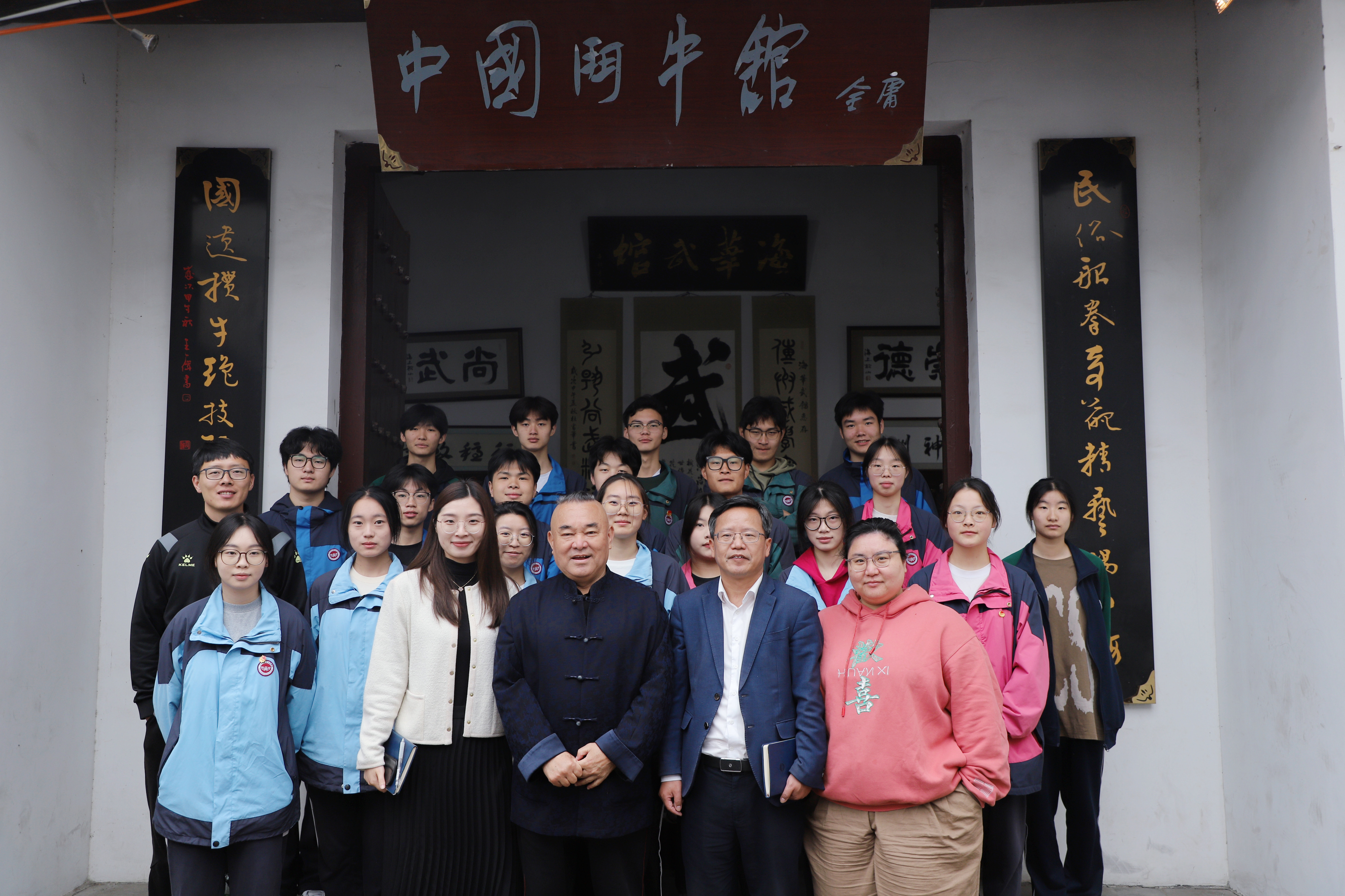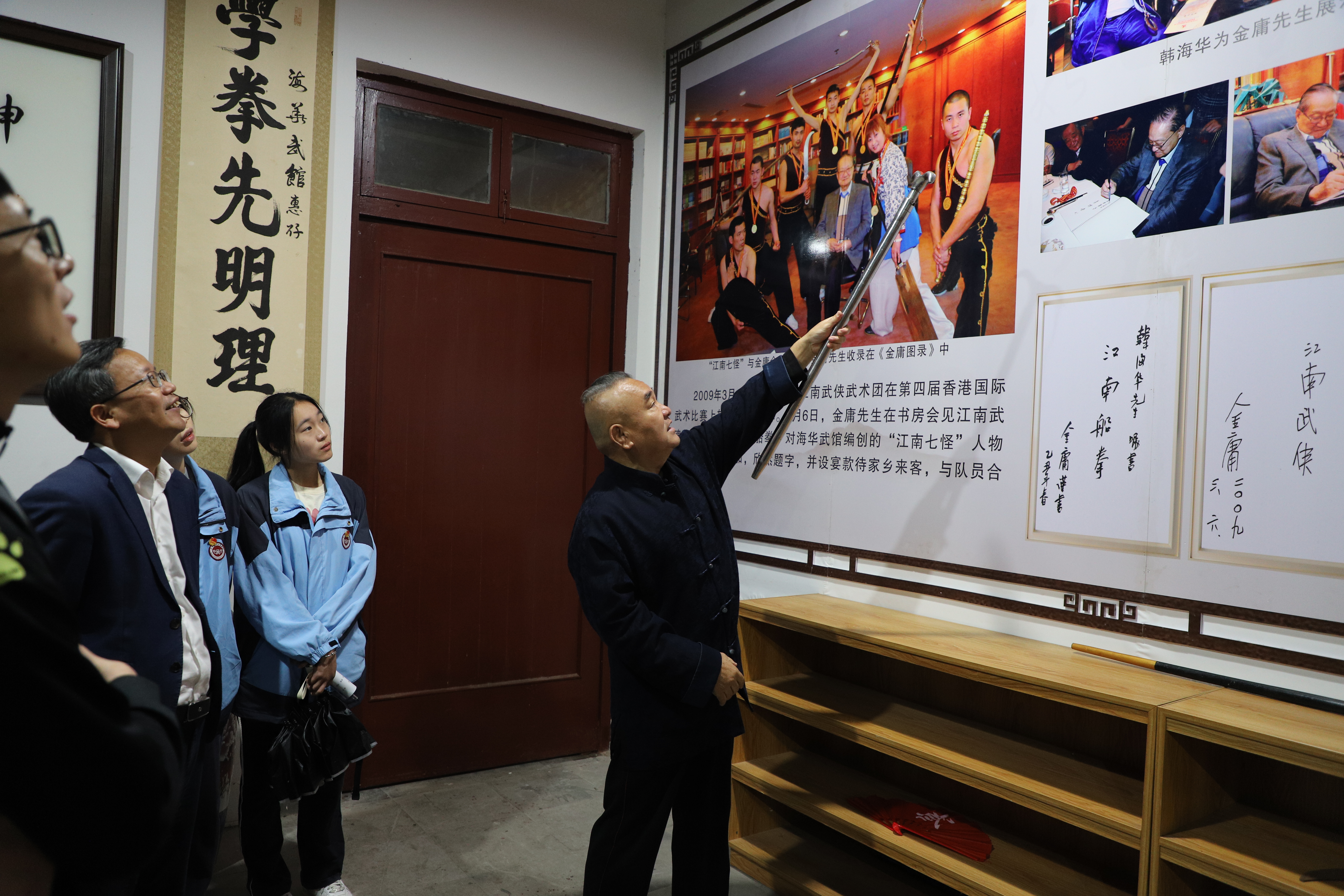 為紀念金庸先生100周年誕辰,緬懷金庸先生對文學、文化、藝術的杰出貢獻,探尋金庸先生的傳奇人生,感受“俠之大者 為國為民”的家國情懷,弘揚愛國主義精神,嘉興市建筑工業學校開展了以“‘金’鍛百年俠骨 ‘建’造江湖一夢”為主題的大思政系列活動。4月17日上午,系列活動之“訪七怪 悟俠道”非遺人物訪談活動如期開展,校黨委委員、紀委書記、副校長陳衛明帶隊,團委書記蔣山花,體育老師顧李冬及20名學生干部前往嘉興市海華武術館,感受武學魅力、體會豪俠風情。