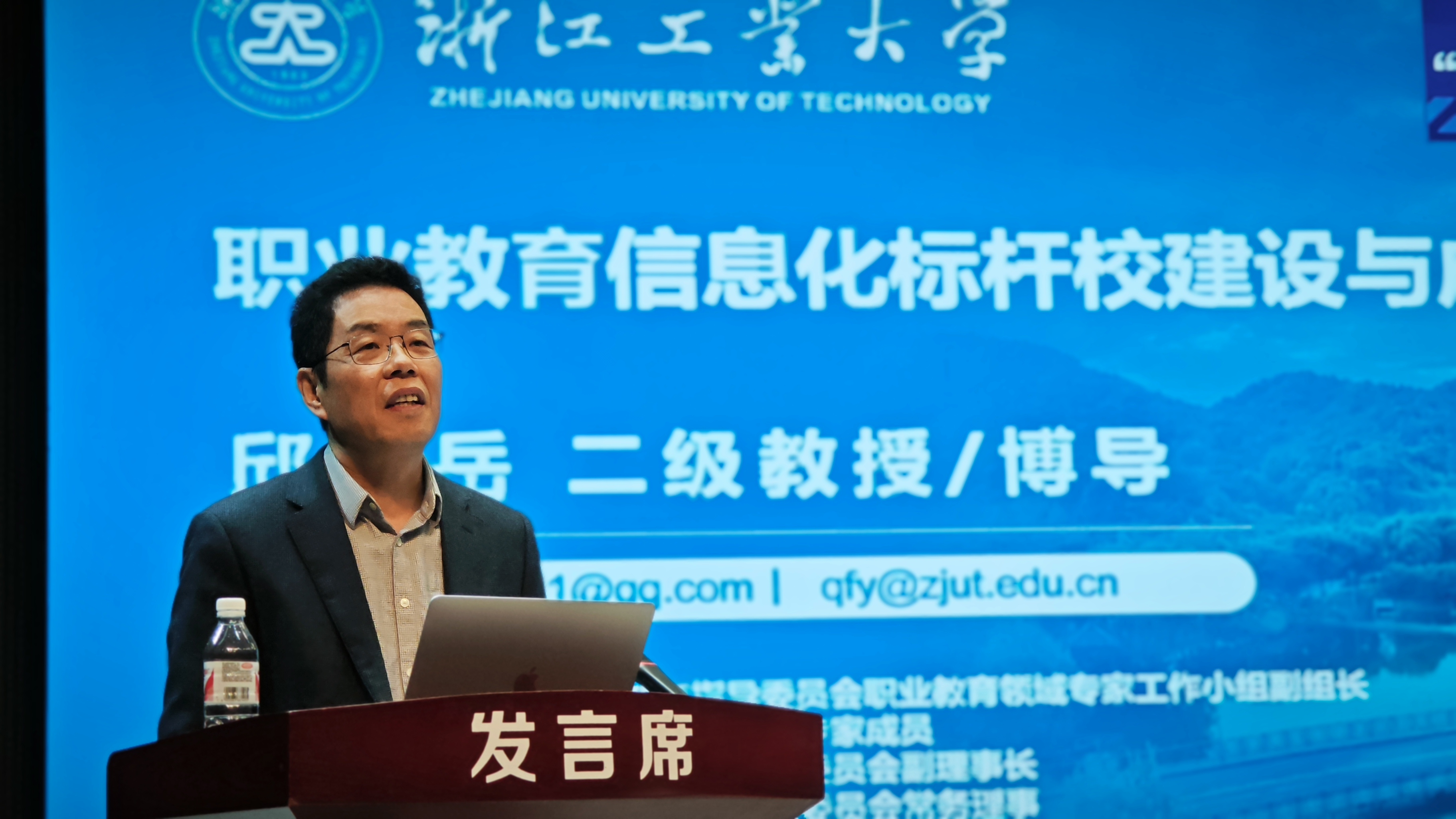 浙江工業大學二級教授、博士生導師邱飛岳,圍繞著《職業教育信息化標桿校建設與成熟度評價》進行研討,以立德樹人為根本任務,以促進學生全面而有個性的發展為目標,以促進技術與教育教學融合創新為核心,推進職業教育信息化標桿校建設。