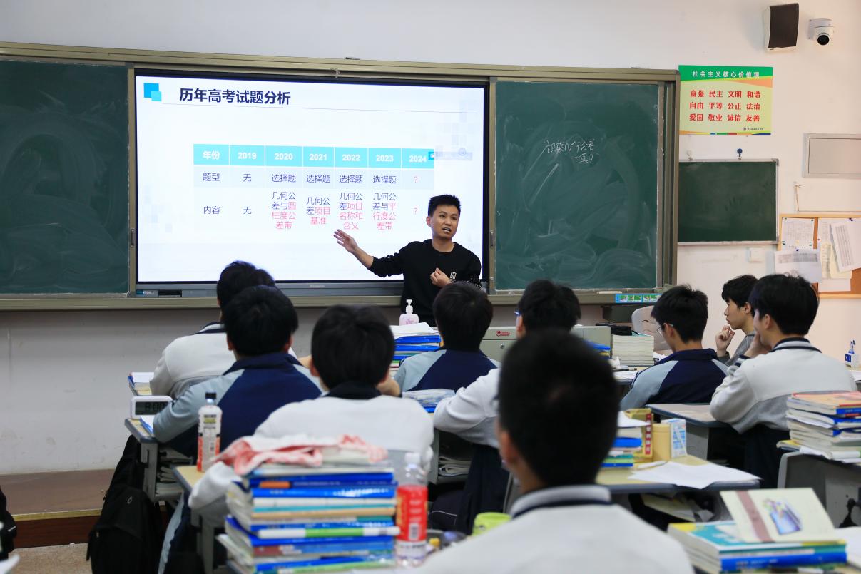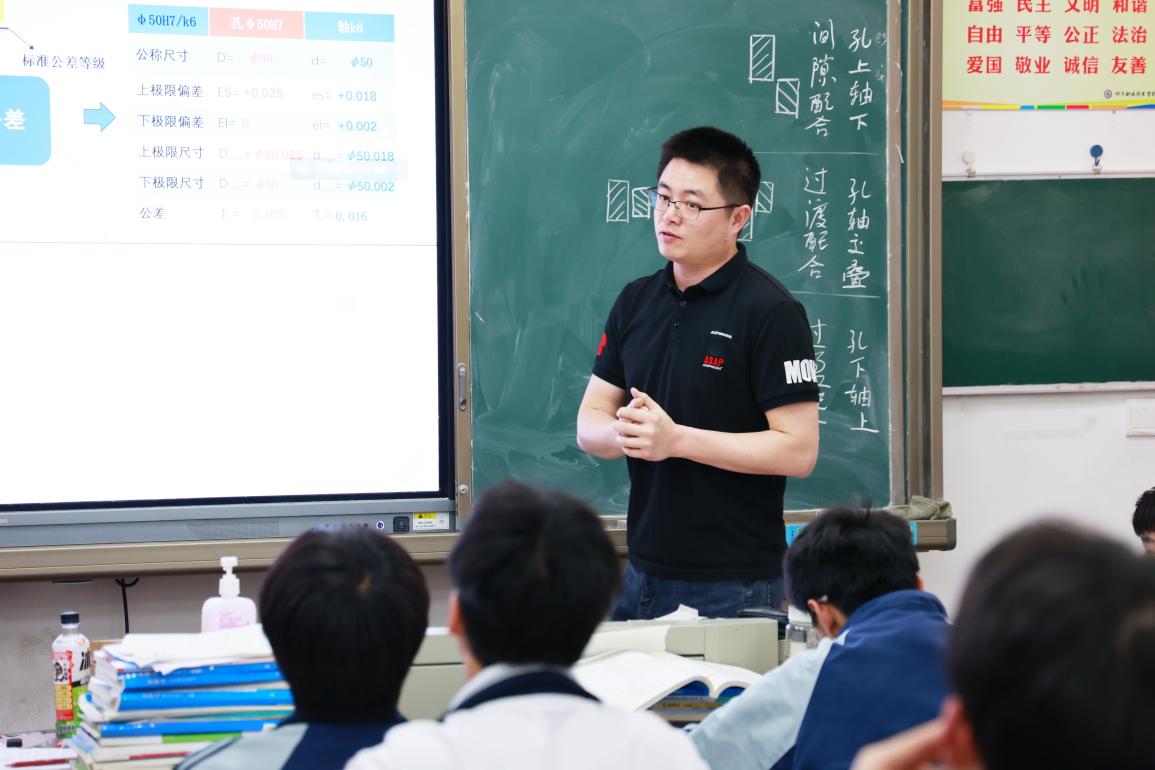 瑞安市塘下職業(yè)中等專(zhuān)業(yè)學(xué)校丁林捷老師帶來(lái)《極限偏差與配合》復(fù)習(xí)課,丁老師采用課前、課中、課后三段式教學(xué),課前下發(fā)練習(xí),幫助學(xué)生梳理知識(shí)點(diǎn),厘清重點(diǎn)內(nèi)容;課中通過(guò)課前練習(xí)分析落實(shí)基礎(chǔ)概念,學(xué)生挑戰(zhàn)高職考真題,師生、生生互動(dòng)分享真題解題要領(lǐng),重點(diǎn)落實(shí)畫(huà)公差帶圖解題,達(dá)成教學(xué)目標(biāo)。
