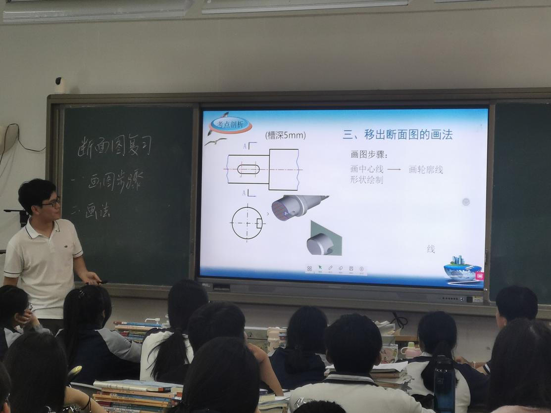永嘉縣職業(yè)教育中心的楊挺老師帶來(lái)《斷面圖》復(fù)習(xí)課,楊老師通過(guò)考點(diǎn)分析、易錯(cuò)題講解、斷面圖的一般畫(huà)法、斷面圖的特殊規(guī)定畫(huà)法、鞏固練習(xí)五個(gè)任務(wù)開(kāi)展本節(jié)課的教學(xué),培養(yǎng)學(xué)生自主思考的能力,帶學(xué)生進(jìn)行復(fù)習(xí)回顧,鞏固所學(xué)知識(shí)點(diǎn)。