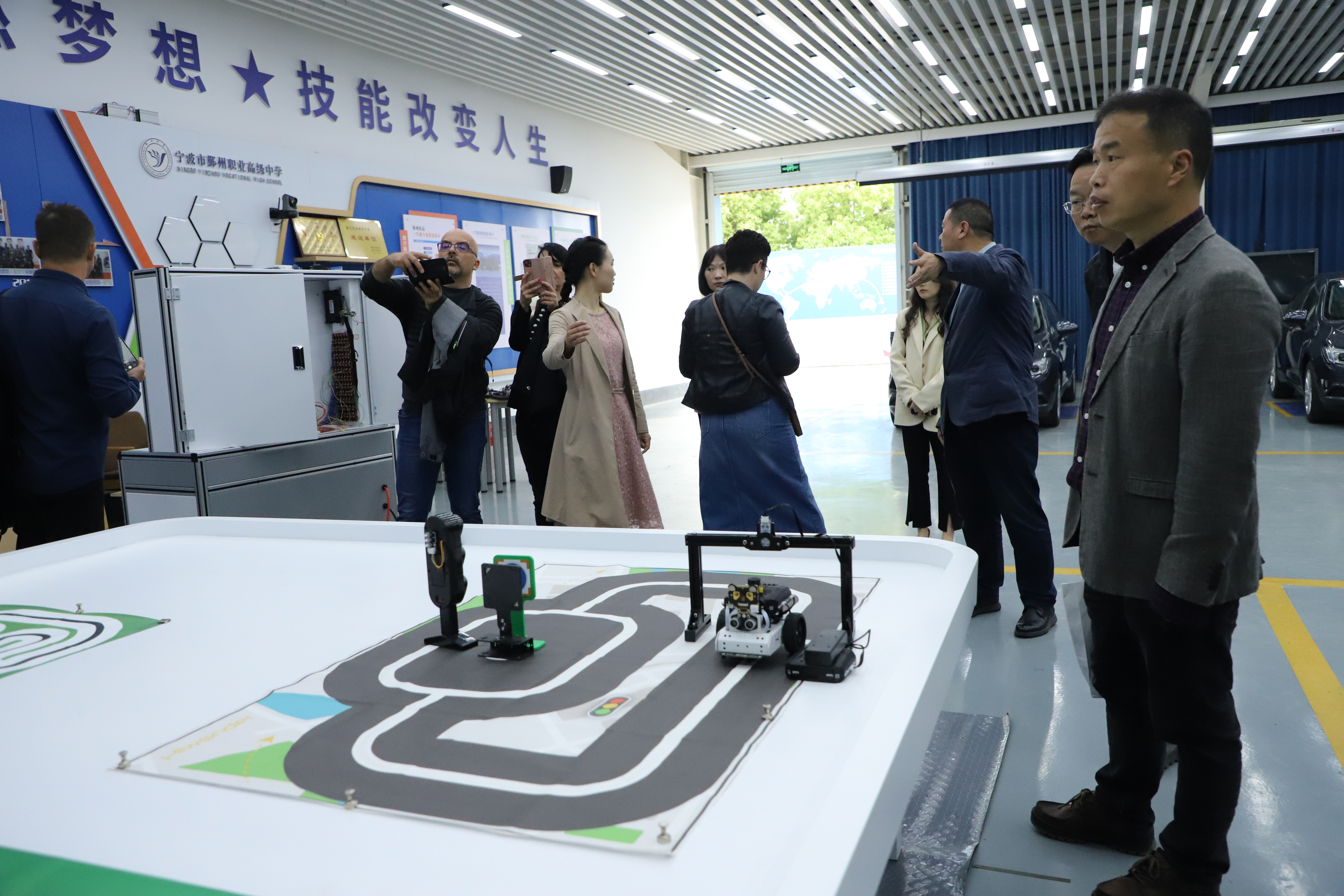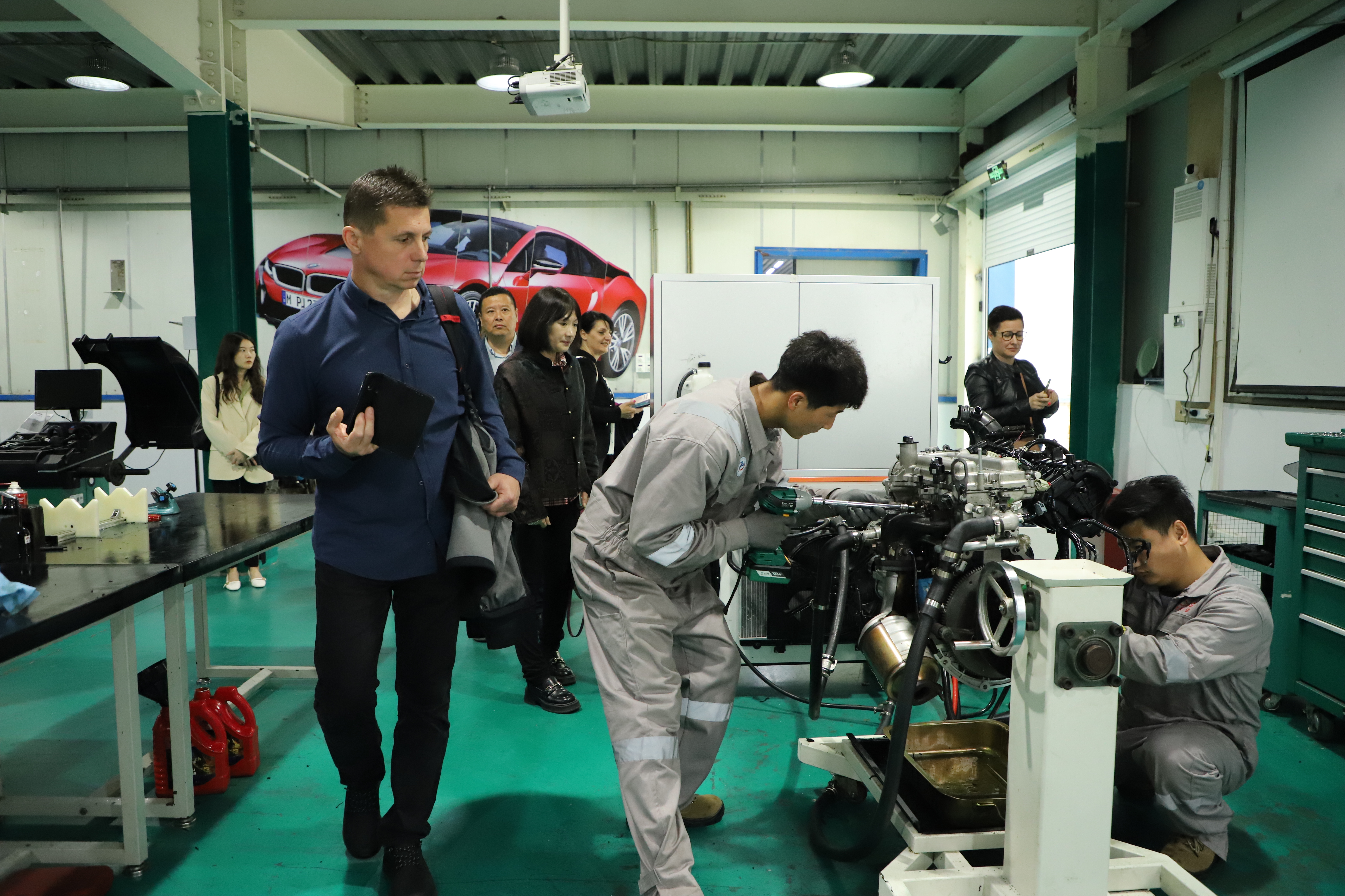 隨后,張武劍校長與校辦、培訓(xùn)處負(fù)責(zé)人帶領(lǐng)居貝爾•馬爾塔副主任一行參觀了校園和新能源汽車運(yùn)用與維修、汽車服務(wù)與營銷、城市軌道交通運(yùn)營、汽車機(jī)電維修名師工作室等實(shí)訓(xùn)場地,以及由學(xué)校學(xué)生制作的竹編、金銀彩繡等非遺作品,了解了學(xué)校的辦學(xué)宗旨與文化理念。考察團(tuán)成員對(duì)學(xué)校多年來的專業(yè)建設(shè)成果贊嘆不已,紛紛表示此次鄞州職高之旅讓他們收獲頗豐,期待今后能夠加強(qiáng)聯(lián)系,多多交流。