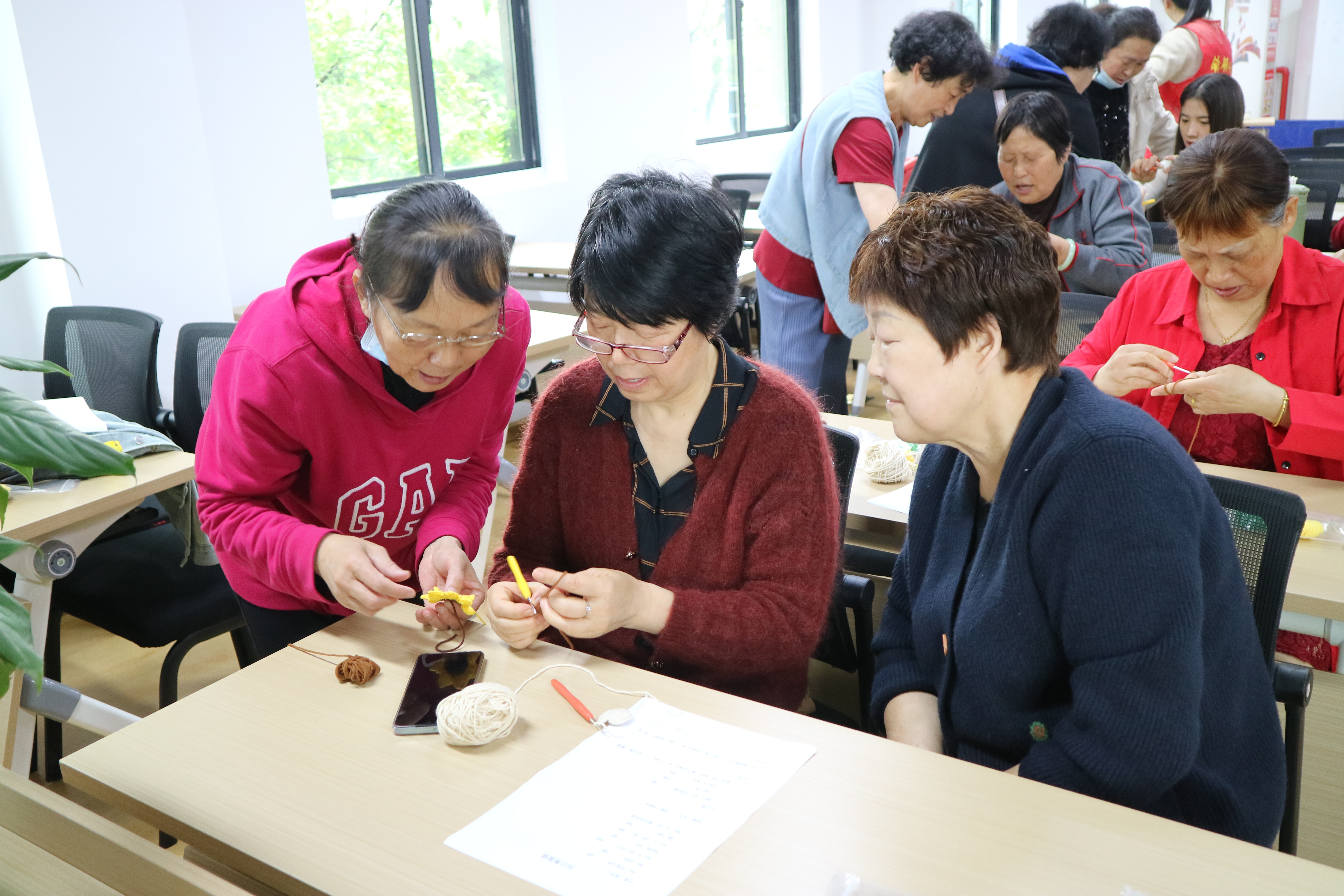 那邊老師被圍住請教針法脫不開身,這邊的“熟練工”網格志愿者身側也早已坐滿了求指導的居民,“你手真巧,快幫我看看這里我是不是鉤得不對。”“我鉤不動線啦,是不是哪里出了問題?”……大家邊互相談論著如何將蛋套鉤得更緊密,邊分享起昔日立夏舊時光。