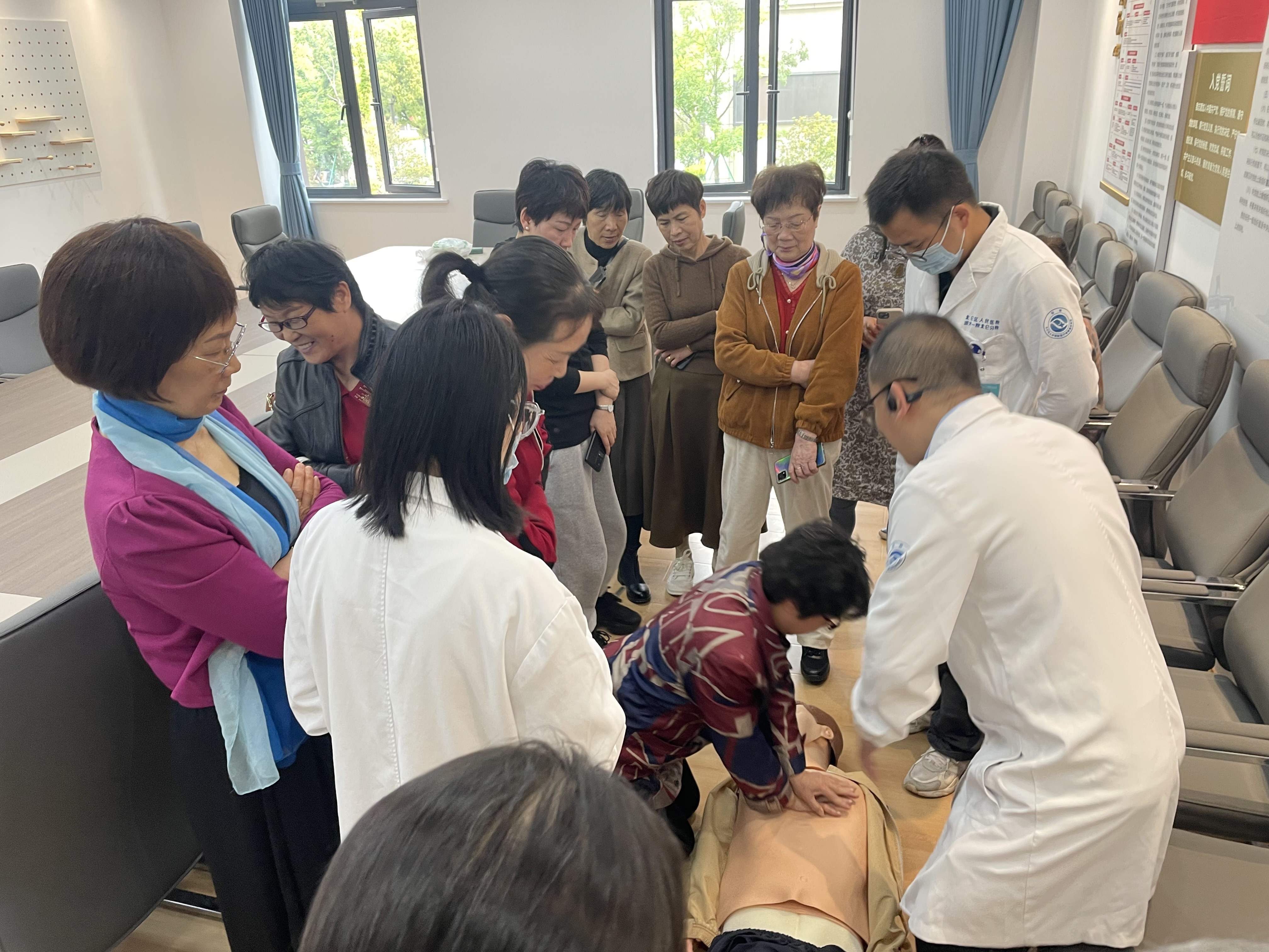 本次培訓特邀北侖區人民醫院急診科梁主任為大家授課,梁主任用通俗易懂的語言,講解了日常各項救援的技巧方法,通過“理論+案例+實操”相結合的方式,詳細講解了創傷救護、心肺復蘇、海姆立克急救法等基礎知識,并通過示范操作,讓居民親身體驗心肺復蘇的操作技能。在梁主任的指導下,大家踴躍進行現場實操,利用人體模型,就心肺復蘇涉及的迅速呼救、胸外按壓、開放氣道等操作步驟進行分解演練。