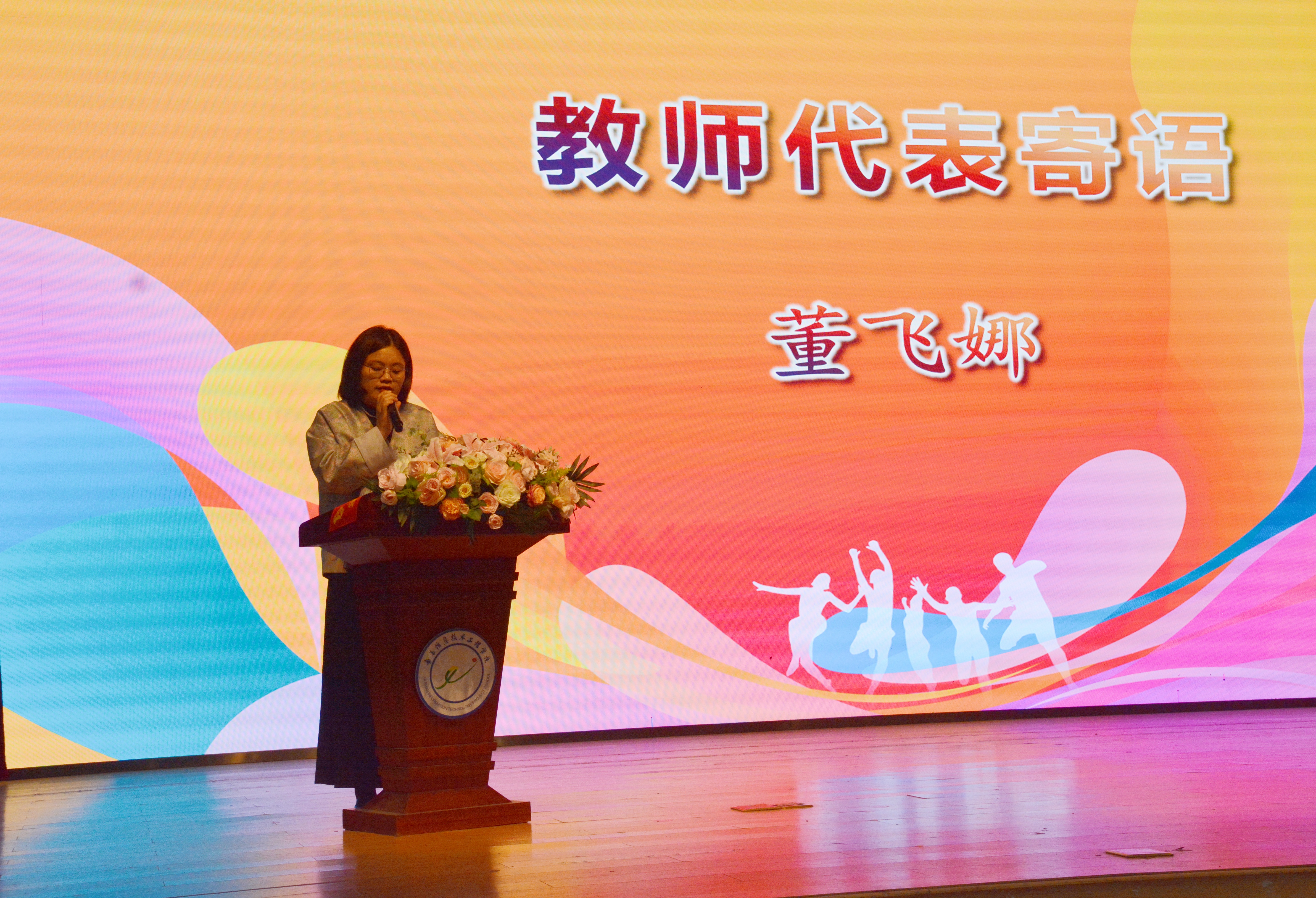 高三教師代表董飛娜向學子們表示祝賀。她表示,成年,意味著已經步入了人生的新階段,希望全體高三學子奮勇拼搏,飛向那更高、更遠的天空,去追尋夢想!