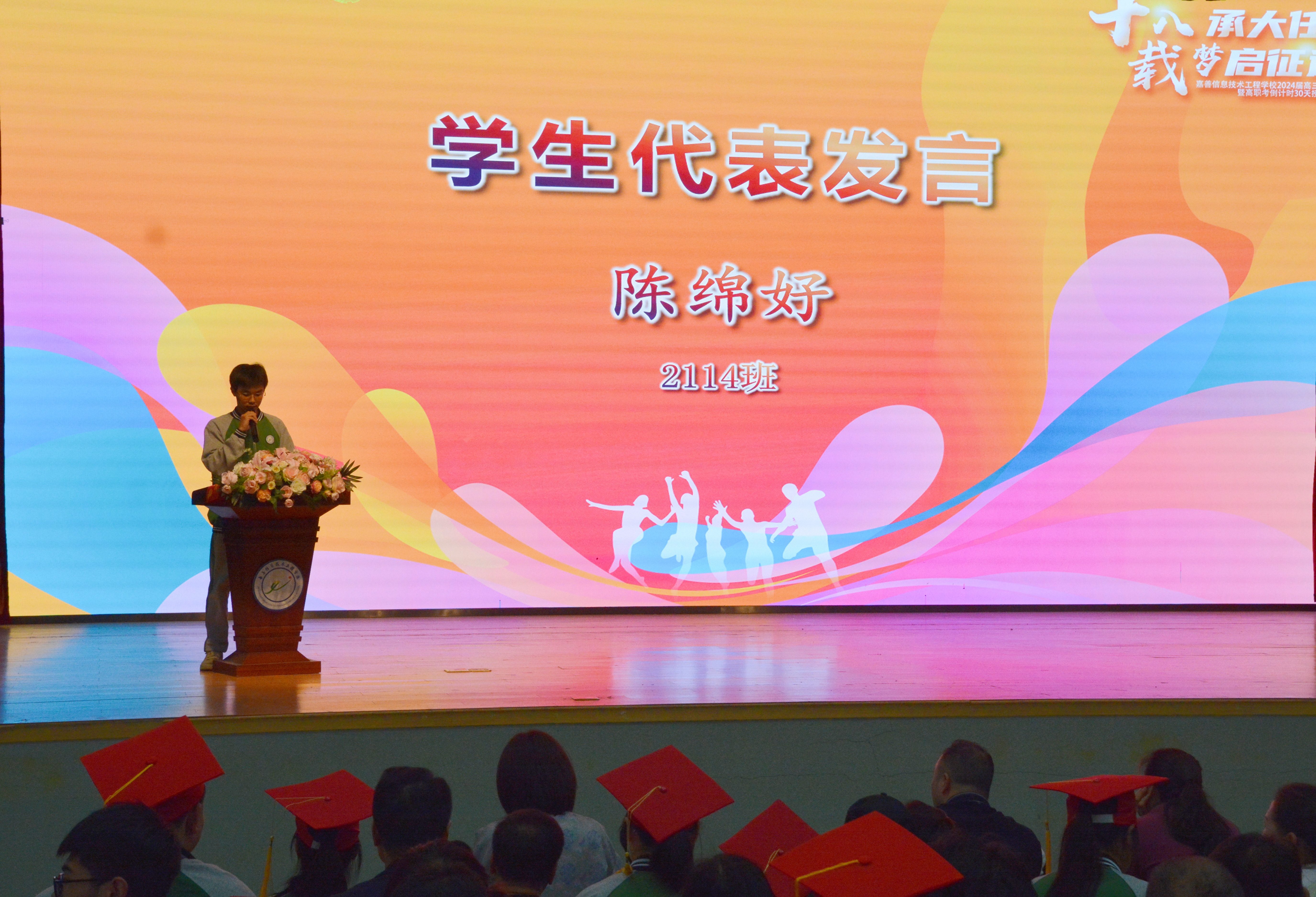 學校黨總支書記陳偉紅致辭,叮囑學生向著理想奮進,帶著責任起航,努力拼搏,再攀新高,用出色的成績和實際行動譜寫人生美好的華章。