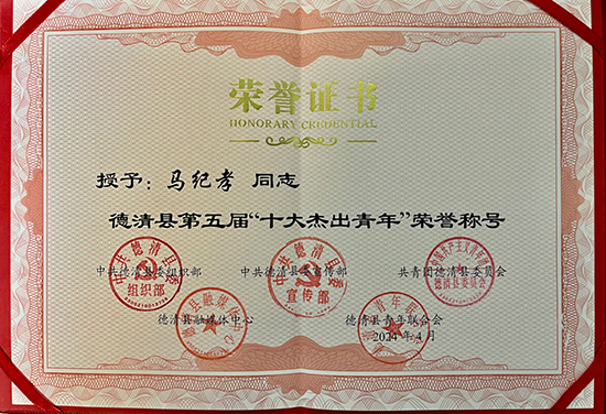 馬紀孝,2010年8月到德清職業(yè)中專機械專業(yè)任教,現任中共德清縣職業(yè)中專第一總支部委員會智造支部書記、德清職業(yè)中專政教處處長、學校工會組織委員。“踏踏實實工作,認認真真育人”是他人生的座右銘,從教14年,作為一名光榮的人民教師、中共黨員,他始終不忘初心,勤勤懇懇,任勞任怨,用心靈守護著這份平凡而又神圣的事業(yè),以對黨和人民滿腔的熱忱積極工作,扎根于職業(yè)教育的這一方沃土,在平凡的崗位上恪盡職守,無私奉獻著。馬紀孝工作認真負責,教學成績顯著,育人貢獻突出,得到了學校和上級部門的肯定,多次被上級主管部門授予嘉獎,被評為全國職業(yè)院校實踐教學能手、浙江省青年工匠、湖州市優(yōu)秀教師、湖州市優(yōu)秀工會工作者、湖州市優(yōu)秀德育工作者、湖州市教壇新秀、湖州市優(yōu)秀科技輔導老師、德清縣抗疫先鋒、德清縣優(yōu)秀班主任、德清縣級優(yōu)秀共青團員、德清縣優(yōu)秀德育導師、德清縣優(yōu)秀工會工作者、德清縣平安校園先進個人等榮譽稱號。
