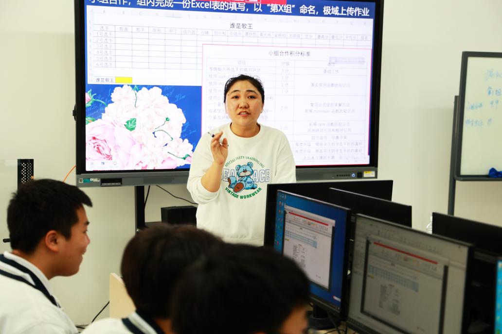 浙江豪情汽車(chē)工業(yè)學(xué)校的吳肖肖老師進(jìn)行了《Excel函數(shù)復(fù)習(xí)》的講解。吳老師以“誰(shuí)是歌王”引入本課,通過(guò)小組合作的形式,結(jié)合“小組合作積分標(biāo)準(zhǔn)”,利用函數(shù)完成Excel表格的填寫(xiě)。課堂氣氛活躍,學(xué)生積極性很高。