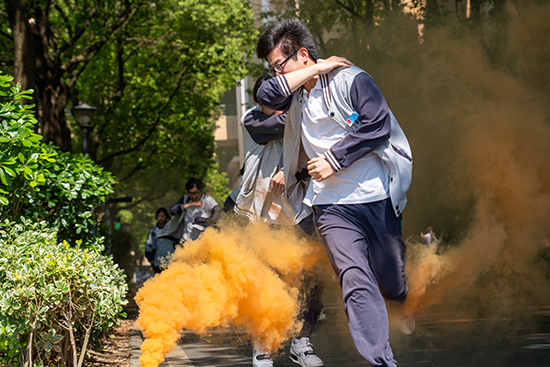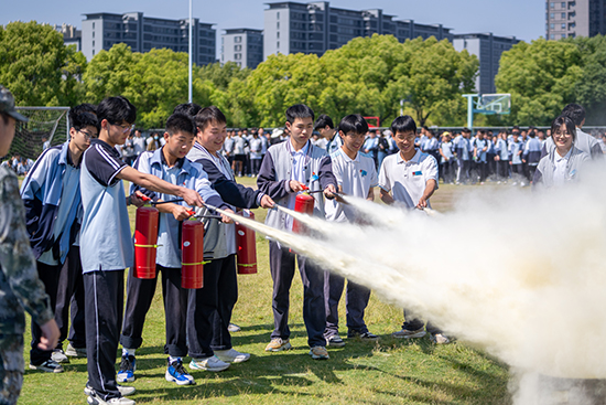 5月10日,學(xué)校舉行防災(zāi)減災(zāi)應(yīng)急疏散演練,嘉通集團安全管理部經(jīng)理陳學(xué)宇,國鴻公司黨委委員鄭利軍,國鴻公司安機部副經(jīng)理錢劍琪、屠朔明蒞臨現(xiàn)場觀摩指導(dǎo)。上午9時許,伴隨著一陣急促的警報聲,全校師生在常務(wù)副校長許賢超的指揮下,按照疏散演練指定路線,緊急撤離到安全地點。各班在疏散區(qū)域集合并清點人數(shù),各班班主任、分組組長、現(xiàn)場指揮逐級向總指揮展開匯報工作,教官劉川川作總結(jié)點評。隨后,兩名教官在司令臺上分別進行了心肺復(fù)蘇和滅火器使用的現(xiàn)場教學(xué),部分師生上臺在教官指導(dǎo)下進行了實際操作。