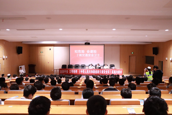 為加強校園交通安全宣傳教育工作,不斷提高青少年的交通安全意識和交通法制意識,有效預防和減少交通事故,恰逢《中華人民共和國道路交通安全法》實施20周年之際,5月10日,玉環市中等職業技術學校邀請臺州高速交警六大隊警官在校C系部樓階梯教室開展《知危險、會避險,做交通安全衛士》專題講座。活動由周加煉老師主持。