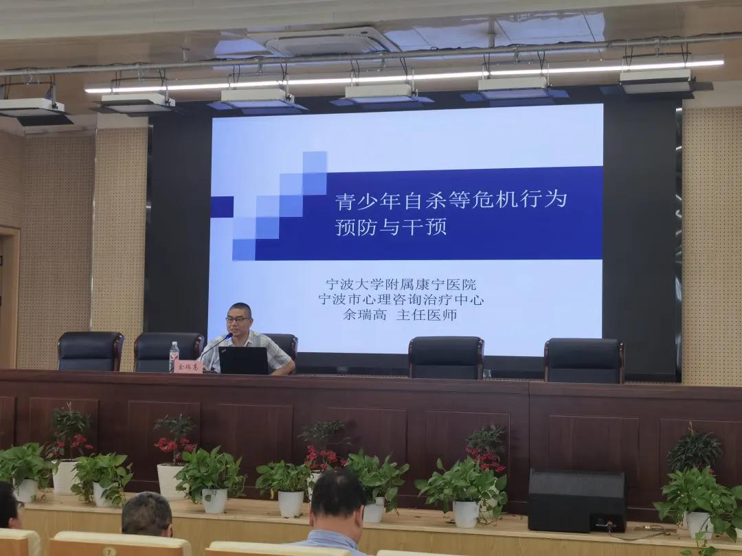 為進一步落實全員“心導師”制度,全面提升學校心理健康教育水平,幫助教師們更好地識別和應對學生心理危機,5月11日,寧波市古林職業高級中學特邀寧波大學附屬康寧醫院余瑞高主任醫師為全體教師開展關于“學生心理危機預防與干預”的心理健康培訓講座。余醫生圍繞學生心理危機的現狀、影響因素、預防措施及應對策略等方面進行了詳細講解。
