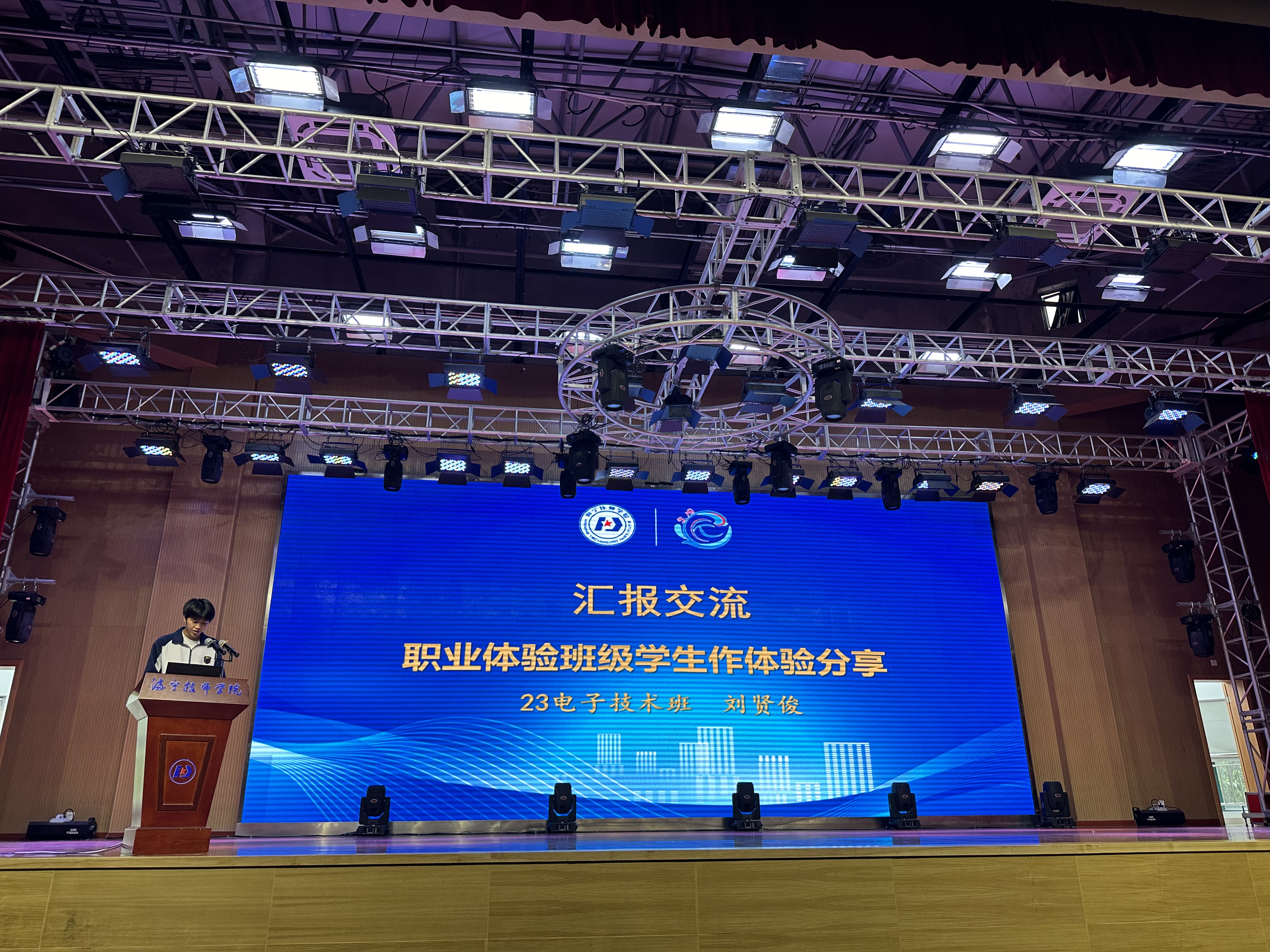 隨后,23電子技術班劉賢俊同學分享了他們在海寧市先進半導體與智能技術研究院的職業體驗活動經歷。通過實地參觀、學習,同學們深入了解了半導體產業的發展趨勢,對未來的職業道路有了更加清晰的認識。