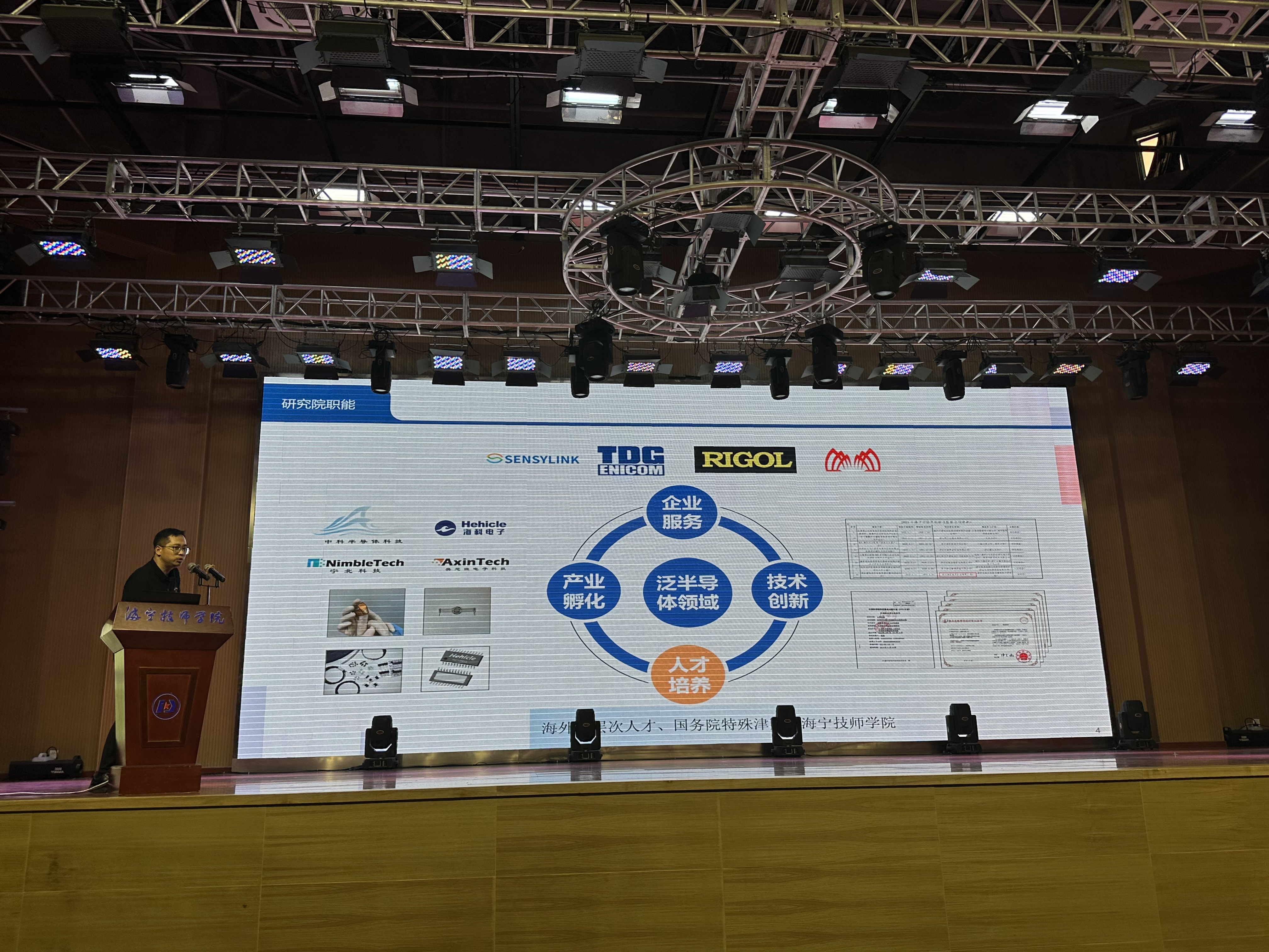 本次活動還邀請到海寧市先進半導體與智能技術研究院科技辦主任張海斌就半導體科技產業人才培養模式的話題向現場師生和家長深入解讀和分享。他的發言為大家提供了寶貴的行業洞察和職業發展建議,也為同學們未來職業發展的方向提供了參考和啟示。