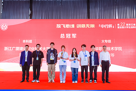 本屆大賽獲得中國銀行金華市分行及浙江正方交通建設有限公司等六家企業資助。未來,金華職業技術學院將充分統籌整合行業和社會資源,竭力促進土木建筑類人才培養質量提升,推動職業教育產教融合走深走實。中國銀行金華市分行副行長朱國清說:“我們將始終堅守‘金融報國’‘金融為民’初心使命,深入貫徹落實黨的二十大精神,積極參與到教育與科技創新的各個領域,深化與更多的教育機構和科研團隊合作,培養更多優秀的科技創新人才,賦能新質生產力發展。”