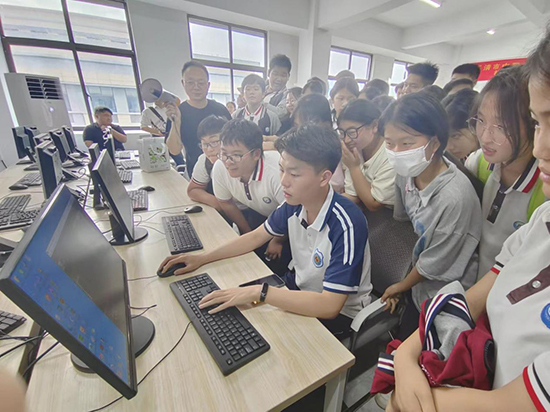 在鉗工、數車實訓室,學生們參觀了精密機械加工設備,驚嘆于現代科技的神奇與力量;在電子、PLC實訓室,他們了解了電路安裝和調試流程,對電子產品制作行業產生了濃厚的興趣;在人工智能實訓室,由學生親自體驗AE技術,感受到了影視后期制作的魅力。