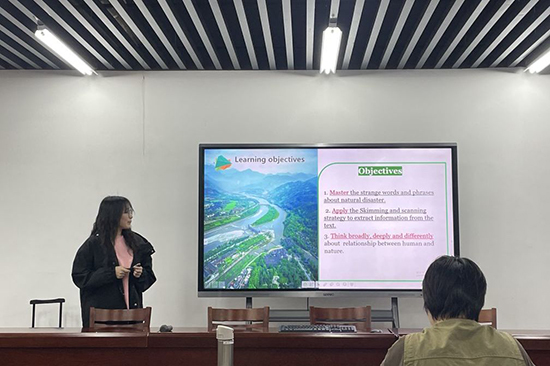 江柳燕老師的說課內(nèi)容是中職英語外研社版基礎(chǔ)模塊1的Unit7 When Disaster Strikes中的“Reading and Writing”。她借助現(xiàn)代化教學(xué)手段調(diào)動(dòng)學(xué)生學(xué)習(xí)積極性,融入巧妙設(shè)計(jì),以活動(dòng)方式引領(lǐng)課堂,讓學(xué)生在讀寫之中感受都江堰水利工程的巧奪天工與實(shí)際意義,進(jìn)一步體會(huì)“天人合一”的環(huán)保思想,課程教學(xué)目標(biāo)和課程思政目標(biāo)均得以較好地達(dá)成。