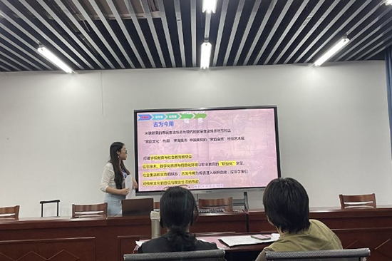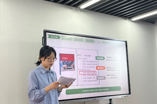 張優(yōu)娣老師“會(huì)當(dāng)凌絕頂,一覽泰山景”的說課內(nèi)容選自高等教育出版社的《旅游文化》。張老師以微課預(yù)熱,利用ClassIn搭建師生互動(dòng)平臺(tái)。通過希沃白板小游戲與VR全景等多種方式,加深學(xué)生對(duì)泰山景觀特征的了解,鍛煉學(xué)生導(dǎo)游詞撰寫、設(shè)計(jì)游覽路線的專業(yè)能力。課程活動(dòng)形式新穎、課堂氛圍活躍。
