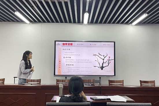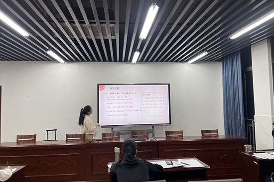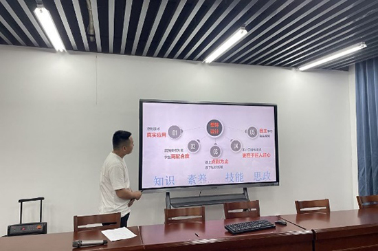 曾在全國中等職業(yè)學(xué)校物理課程“創(chuàng)新杯”教師信息化教學(xué)說課大賽中獲得一等獎(jiǎng)的胡建珊老師,為教師們展示了一等獎(jiǎng)的說課《機(jī)械波及應(yīng)用》,通過“繩波、聲波”與“麥浪、人浪”的實(shí)驗(yàn)演示,實(shí)現(xiàn)“機(jī)械波”概念的具像化理解;立足學(xué)生未來就業(yè)需要,帶領(lǐng)學(xué)生深入名企車間,利用現(xiàn)場(chǎng)教學(xué)搭建知識(shí)框架,完成知識(shí)的遷移與創(chuàng)新。同時(shí),胡老師分享了從市賽到國賽的備賽歷程,重點(diǎn)闡述了說課中如何進(jìn)行整體的教學(xué)設(shè)計(jì),如何融入“崗課賽證”育人理念。