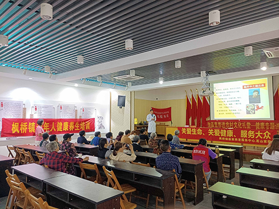 5月9日下午,諸暨市楓橋鎮(zhèn)社區(qū)教育學(xué)校邀請(qǐng)諸暨市第二人民醫(yī)院的孟建鋒、陳旭鋒和朱樂樂三位專家走進(jìn)楓橋鎮(zhèn)全堂村文化講習(xí)所,為老年朋友宣講健康養(yǎng)生知識(shí)。