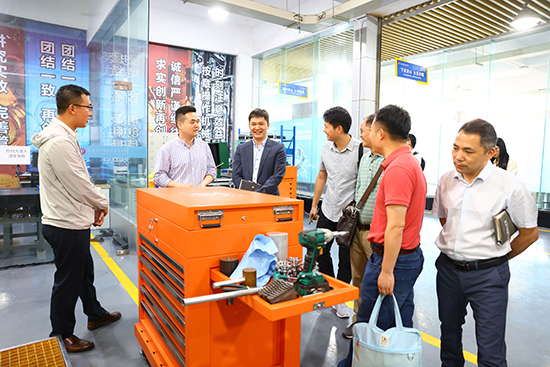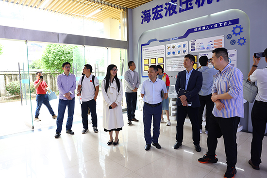 會(huì)后,在許月桂的帶領(lǐng)下,各項(xiàng)目負(fù)責(zé)人陪同來訪的客人們先后參觀了學(xué)校的實(shí)訓(xùn)場地、靈匠培育中心等,詳細(xì)了解學(xué)校的專業(yè)教學(xué)實(shí)踐環(huán)境,進(jìn)一步展示了“雙高”整體建設(shè)情況。