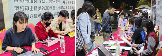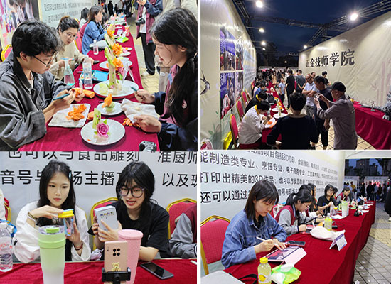 作為現(xiàn)場主要互動體驗區(qū)之一,學(xué)校展位吸引了眾多市民前來打卡體驗。從3D打印到食品雕刻,從電商直播到人物速寫、動漫繪畫,學(xué)院學(xué)子展現(xiàn)了相關(guān)專業(yè)獨具特色的技能,并與市民朋友互動。截至12日晚,約有6000人次市民打卡學(xué)校展位。
