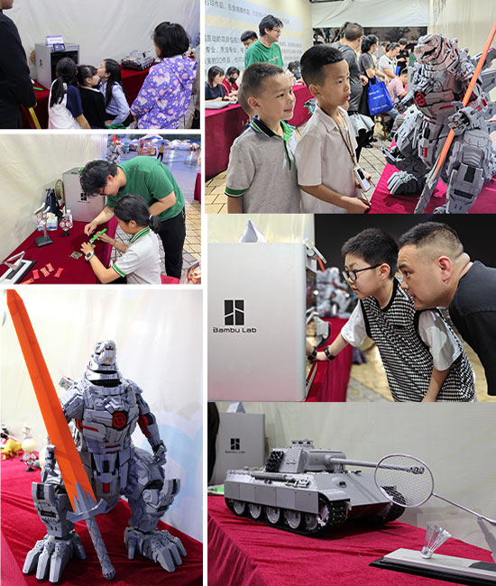 大到“哥斯拉”“坦克”,小到“小動物”“小汽車”,一系列精美的3D打印作品和現(xiàn)在制作的工藝品引起了許多少年兒童們的關(guān)注。他們聚集在3D打印機前目不轉(zhuǎn)睛地觀看3D工藝品是如何打印的,希望未來能深入學(xué)習(xí)。在智能制造學(xué)院學(xué)生的現(xiàn)場展示下,實訓(xùn)中心教師王朝旭、徐意雙細致地向市民朋友們介紹著3D打印的工藝與展品。