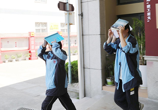 各班達到指定地點后,隨即清點本班人數,確認全部學生到位。本次演練過程有條不紊,從教室到集中點約用時4分鐘,嘉興市建筑工業學校近3000名師生均能做到就地避險、安全撤離、有序集合。