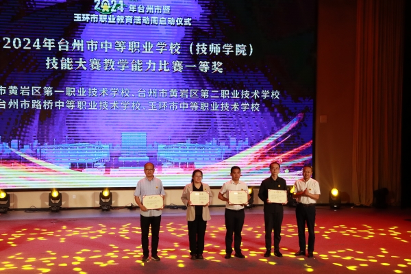 活動現場為2024年臺州市“面向人人”競賽文化課項目團體前六名、臺州市“面向人人”競賽專業課一等獎獲得者、臺州市中等職業學校(技師學院)技能大賽教學能力比賽一等獎獲得者、臺州市職業院校技能比賽突出貢獻學校頒獎。