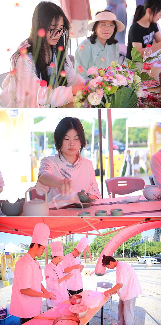 在職業教育活動周的現場,學生們不僅展示了精湛的花藝、茶藝和中式面點制作技藝,更深刻體驗了傳統文化的獨特魅力。他們親手制作的美食、精心泡制的工夫茶和巧妙搭配的插花作品,都贏得了市民朋友們的連連稱贊。這些傳統職業體驗項目,不僅展示了學生們的精湛技藝,更體現了他們在實踐中感受到的傳統文化。