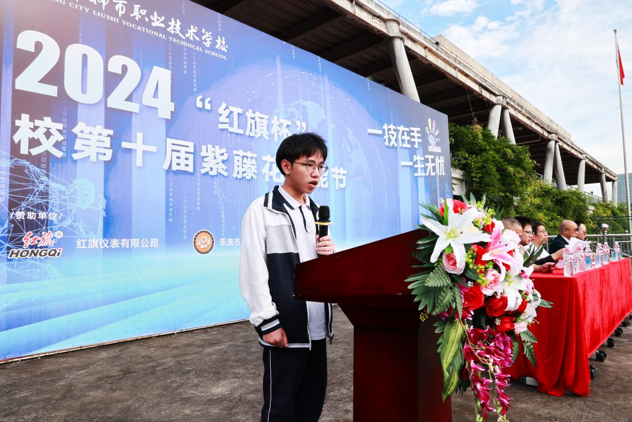 5月14日,樂清市柳市職業(yè)技術學校舉行‘紅旗杯’校第十屆紫藤花技能節(jié)。開幕式上,21計1班級潘仕華(浙江省學生技能比賽二等獎)作為參賽學生代表發(fā)言,他認識到職業(yè)技能是職業(yè)學校學生安身立命的根本,是展現自身能力、實現自我價值最直接的途徑,他將以文明的方式參與比賽,以良好的道德風尚和專業(yè)的技能知識,在比賽中研習技藝、切磋技巧,賽出風格,賽出精彩!