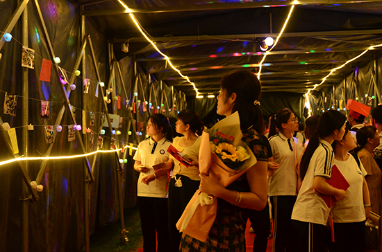 晚會結束后,同學們還可以在一條別具匠心的“時光隧道”里,欣賞班主任們精心挑選的照片,這些都是同學們的青春印記。同時,還可以在一片精心布置的“夢想林”掛上自己親手書寫的心愿,將青春的誓言和對未來的憧憬,深深扎根于這片夢想之土。