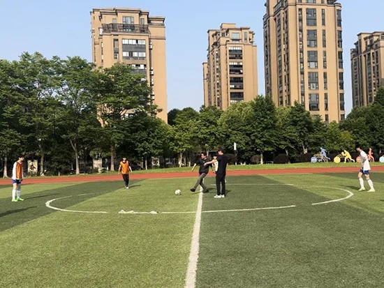 足球賽場,同學們揮灑汗水,為榮譽而戰。他們奮力奔跑,用雙腳詮釋著對足球的熱愛。