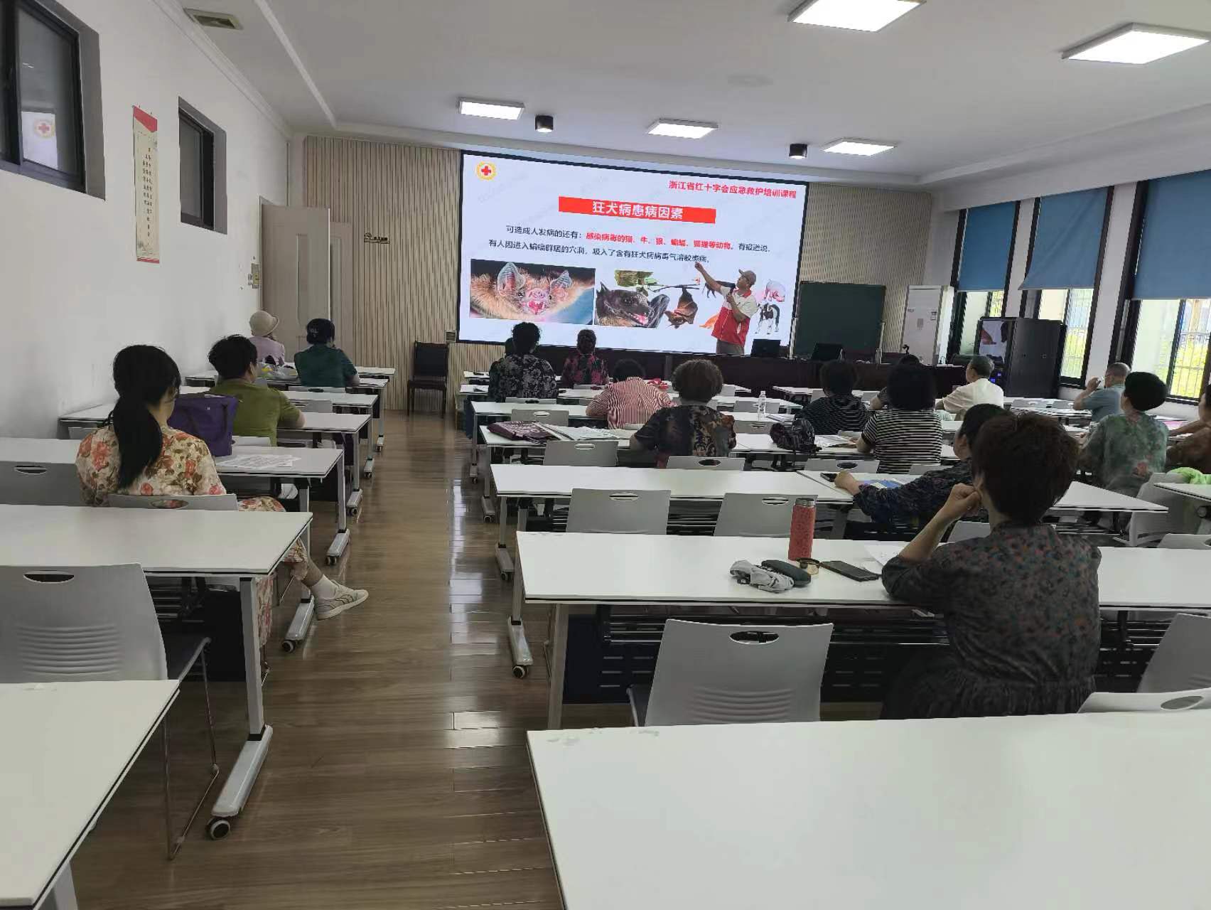 5月24日上午,安吉縣社區(qū)教育學(xué)院昌碩分院的多媒體教室內(nèi),原本應(yīng)該傳出悠揚(yáng)歌聲的教室卻變得安靜起來。原來,昌碩分院的丁柏偉老師利用這個平時用于唱歌的平臺,向?qū)W員們普及寵物抓咬傷的應(yīng)急處理知識。