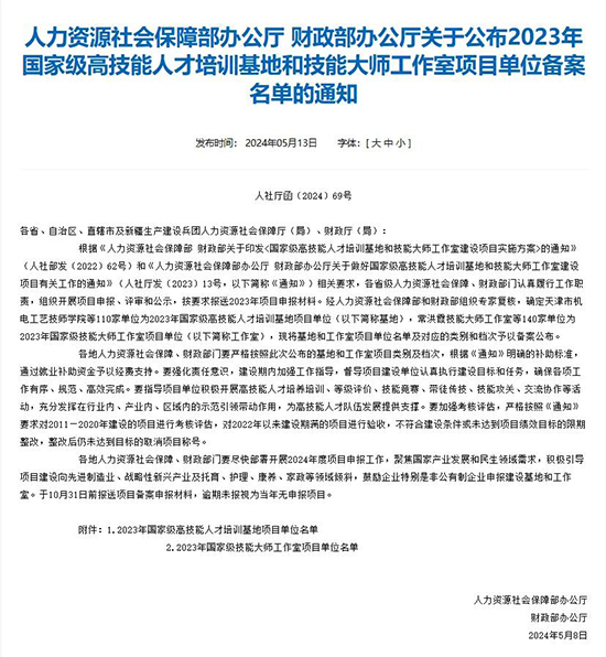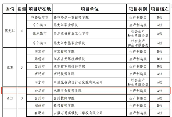 5月13日,人力資源和社會保障部辦公廳、財政部辦公廳聯(lián)合發(fā)文,公布了2023年國家級高技能人才培訓基地項目建設單位名單。浙江省僅有3家單位入選,其中永康五金技師學院獲批生產(chǎn)制造類A檔,成為金華市唯一上榜單位。