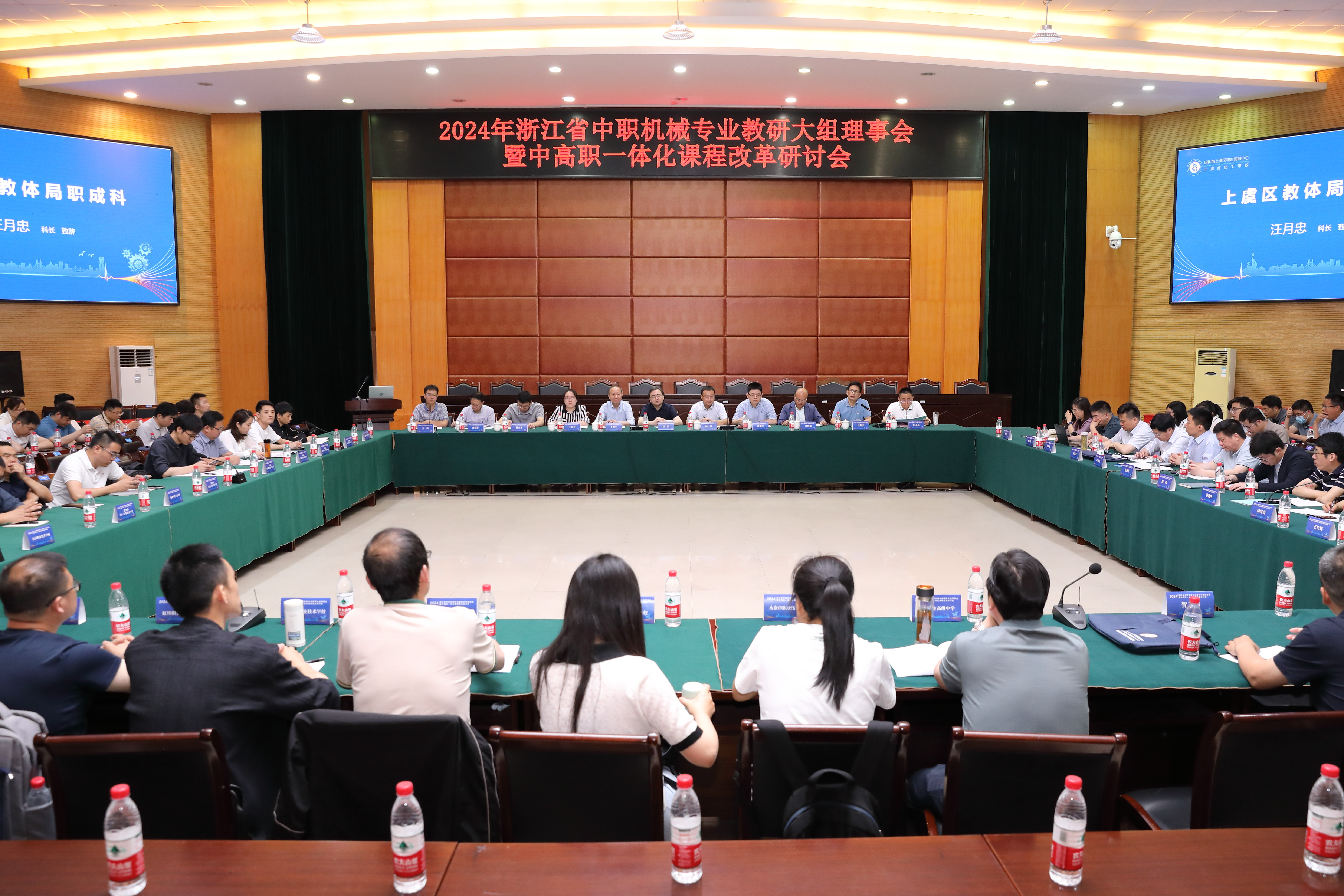 2024年5月21日至22日,浙江省中職機械專業(yè)教研大組理事會暨中高職一體化課程改革研討會在上虞區(qū)職業(yè)教育中心舉行。本次大會由浙江省教育廳職成教教研室主辦,上虞區(qū)職業(yè)教育中心承辦。浙江省教育廳職成教教研室主任崔陵,浙江省機電職業(yè)技術(shù)學(xué)院副校長丁明軍,浙江省教育廳職成教教研室教研員戚海華,紹興市教育局職教教研室主任孫堅東,以及全省各地市教研員,中職機械專業(yè)理事長、副理事長學(xué)校代表,中高職院校代表,企業(yè)專家等120余人參加本次活動。