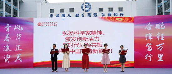今年5月25日至6月1日是全國科技活動周,為深入學習貫徹黨的二十大關于科技創新重大決策部署,大力弘揚科學家精神,進一步促進科學普及與科技創新協同發展,提升全校師生科學素養,5月27日,浙江信息工程學校·湖州工程技師學院國旗下思政大課以《弘揚科學家精神,激發全社會創新活力》為主題,校黨委副書記張建霞與信息黨支部黨員教師帶領全校4000余名師生一起,在學習科學家精神的宣講中,揭開了學校科創節的序幕。