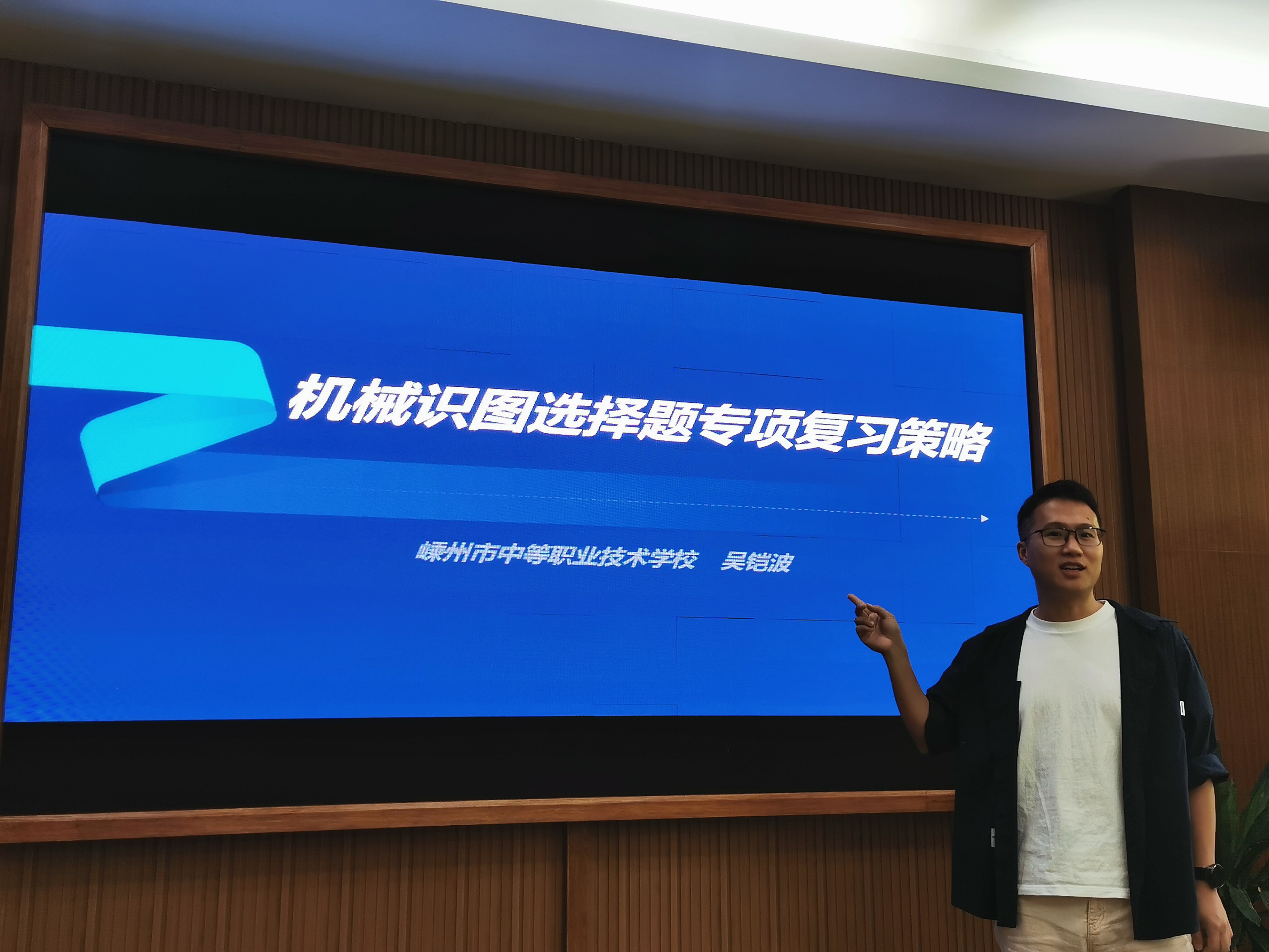 嵊州市中等職業技術學校的吳鎧波老師做了《機械識圖選擇題專項復習策略》的主題分享,詳細介紹了機械識圖選擇題的復習方法和策略,幫助教師們更好地指導學生應對這一考試內容。磐安縣職業教育中心的夏悅老師分享了《理論高考閱卷中的點滴思考》,她從閱卷角度出發,分享了高職考理論考試的評分標準和閱卷細節,通過閱卷心得總結了目前學生在高職考復習中出現的問題,給與會教師們提供了提高學生理論考試成績的有效方法。云和縣中等職業技術學校的朱啟棟老師以《機械識圖畫圖題專項復習策略》為題,分享了機械識圖畫圖題的復習技巧,例舉的典型案例生動直觀,將機械識圖復習知識點總結為“化整為零,積零為整”,為教師們提供了切實可行的教學設計和復習策略。最后,鎮海區職業教育中心學校的王芳老師帶來了《做一支高考生管理的心理鎮靜劑》主題分享,她從自己專業教學老師和高三班主任雙重身份的角度出發,結合自己真實的學生案例分享了如何在高考備考過程中做好學生的心理疏導和情緒管理,確保學生以最佳狀態迎接考試。