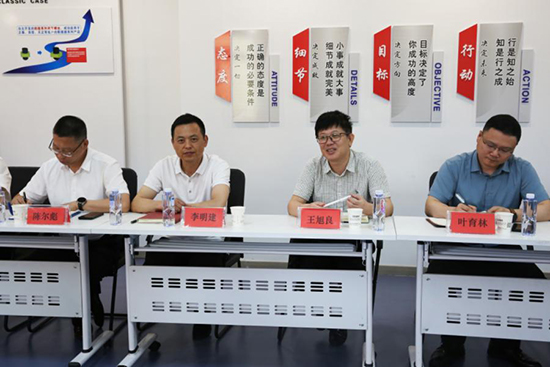 王旭良副局長對企業的支持與付出表示感謝,中職學校開展校企合作是中職教育的重要環節,企業的參與將促進職教的蓬勃發展。王局就企業人才學歷要求以及人才培養方向與企業進行進一步的探討。