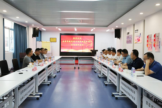 企業走訪活動結束后,調研組來到柳市職業技術學校召開座談會。王旭良副局長肯定了學校現代學徒制創新人才培養模式,真正實現校企一體化育人。接下來,在師資培養以及教材開發方面要持續發力,助力人才培養。與會人員進一步討論了今年招生宣傳政策、實訓投入、對外職業技能培訓以及社會人員學歷提升等工作。