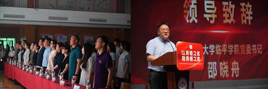 活動在雄壯的國歌中拉開序幕,學院黨委書記邵曉舟上臺致辭,他對全體學生提出殷切希望:青年如同大地上茁壯成長的樹苗,終將成為參天大樹;青年猶如初升的太陽,終將照亮整個世界。黨和國家的未來寄托在青年身上,每一個人都肩負著重要的使命。