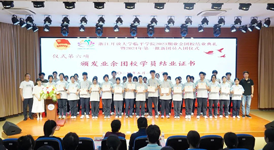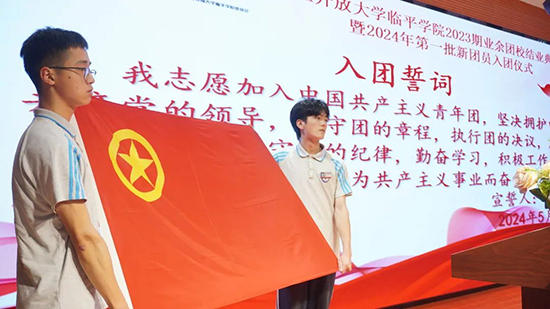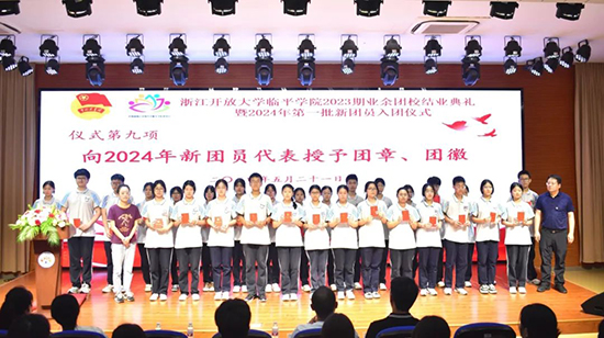 2024年是中華人民共和國成立75周年,也是五四運動105周年,更是貫徹黨的二十大精神的關鍵之年。為進一步加強對學生的愛國主義教育,切實增強共青團員的先進性和光榮感,展現新時代青年朝氣蓬勃的精神面貌,5月21日中午,浙江開放大學臨平學院(臨平商貿職高)在清蓮廳小劇場隆重舉行2023期業余團校結業典禮暨2024年第一批新團員入團儀式。